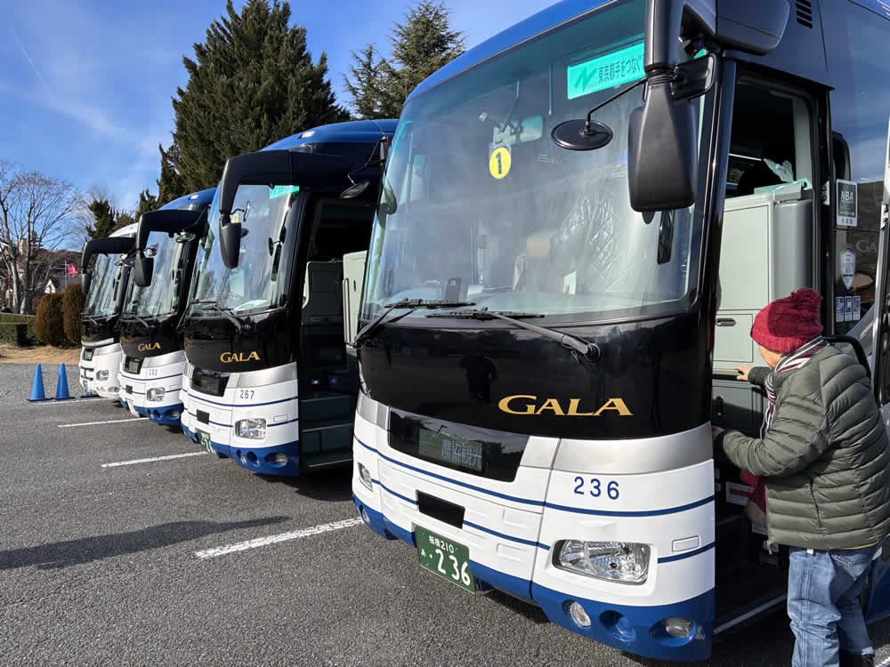 迎春旅行──富士山に見守られた年末年始 2026.01.12外出支援 年末年始、「東京都手をつなぐ育成会」主催の旅行付き添いとして、石和温泉へ行ってきました。 大型バス3台に分乗しての、にぎやかな年越しバスツアーです。 行き先は山梨県を中心に、いくつもの観光地を巡る行程。 ハーブ庭園や音楽と森の美術館、猿回しの観覧など、次々と予定が続きます。 忙しい移動の合間に、何度も姿を見せてくれたのが富士山。 観光地に着く前も、バスの窓からふと目を向けた先にも、変わらずそこに。 楽しみのひとつは、やはり食事です。 朝・昼・晩と用意された食事はどれも豪華で、大晦日の夕食には年越し蕎麦も並びました。 元旦の朝は、ホテル近くの甲斐奈神社へ初詣。 新しい年を、いつもとは違う地で迎えます。 新年最初の観光は、マルス山梨ワイナリーの見学と試飲です。 今年の元旦は、おとそ代わりにワインを少々。 甘い香りに包まれたいちご狩りでは、 イベント続きで少し疲れた体に、ビタミンCをしっかりチャージしました。 天候にも恵まれ、富士山に見守られながらの迎春旅行。 無事に終えられたことに、何よりほっとしています。 Post Share Hatena Pocket RSS feedly 外出支援グループ, ツアー, 寺社, 展示, 旅行