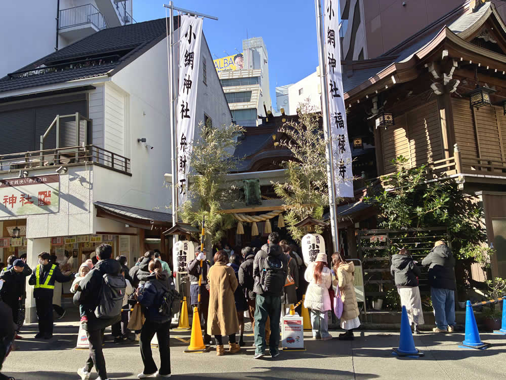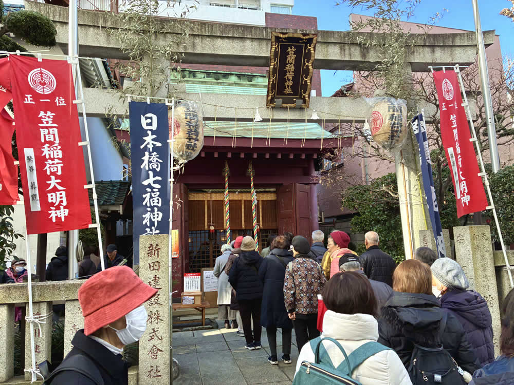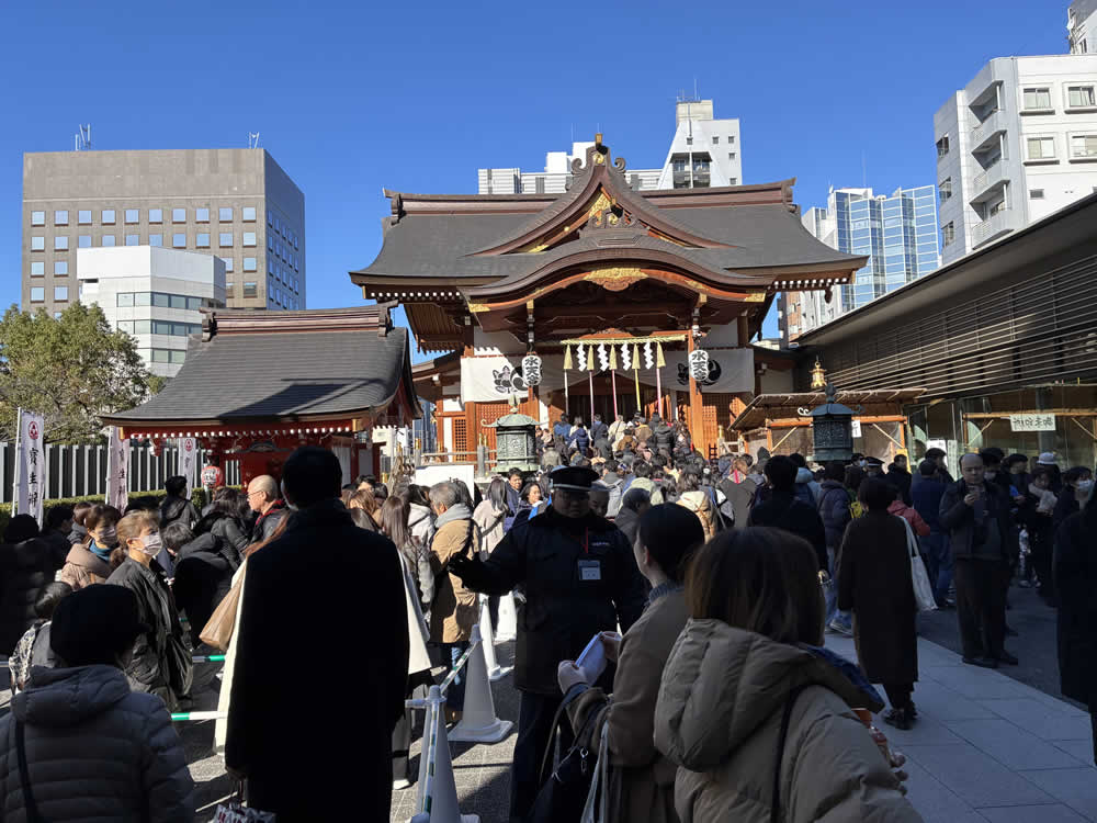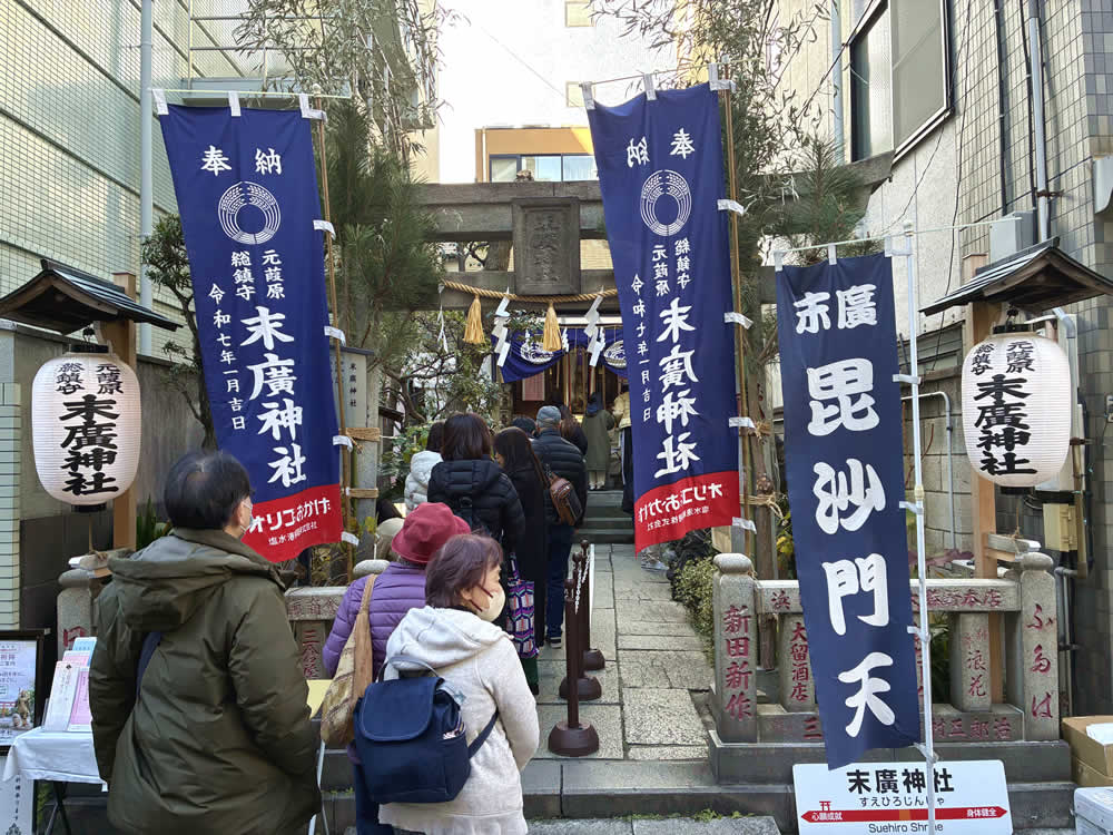 日本橋七福神詣 ── 街歩きで楽しむ七社巡り 2026.02.02外出支援 都内にはいくつもの七福神がありますが、今年はUさんと「日本橋七福神」を巡ってきました。 江戸時代から続く七福神巡りのひとつで、巡拝距離も短く、気負わず歩けるのが魅力です。 参拝の順番は決まっていないため、地図を見ながら巡ります。 まずは「弁財天」を祀る、水天宮(宝生弁財天)へ。 境内は多くの参拝客でにぎわい、新年の空気が自然と背筋を伸ばしてくれます。 続いて、「大国神」の松島神社、「布袋尊」の茶ノ木神社へ。 いずれもほどよい距離にあり、足取りよく次の神様へと向かえます。 次は「福禄寿」の小網神社へ。 向かう途中から見えてきたのは、思わず足を止めたくなるほどの長い行列。 どうやら参拝待ちの列のようです。 小網神社は、強運厄除の神・銭洗い弁天様で知られる神社。 「金運アップ」という言葉に心が動くのも、正直なところです。 とはいえ、待ち時間は約2時間。 今回は遠くから手を合わせ、「恵比寿神」の椙杜神社へと向かいました。 こちらは、お正月限定の「七福神バーガー」 神様巡りの合間に、胃袋にもちょっとご利益を。 最後は、「寿老神」の笠間稲荷神社、そして「毘沙門天」の末廣神社へ。 七つの神様を巡り終えるころには、歩いた距離以上の満足感が残ります。 末廣神社ではお神酒をいただき、獅子舞に頭を噛んでもらいました。 Uさんも、しっかり厄払いができたことでしょう。 Post Share Hatena Pocket RSS feedly 外出支援ウォーキング, 寺社