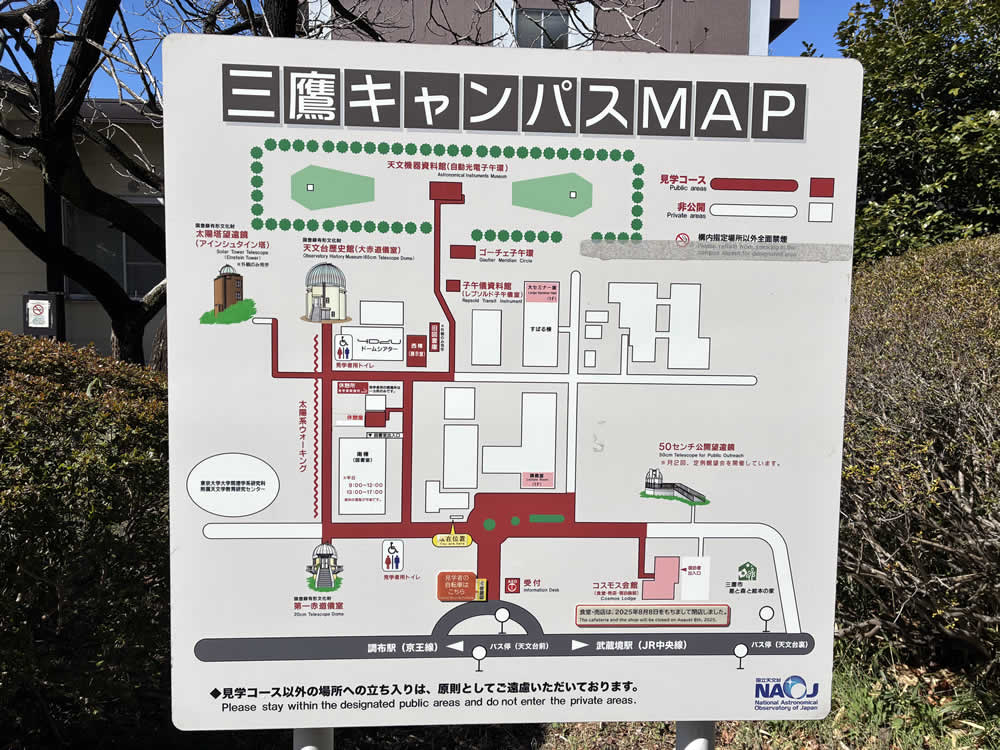 武蔵野の森で宇宙を想う──三鷹・国立天文台 2026.04.02外出支援 2026年3月3日は、皆既月食が観察できる日でした。 けれど関東はあいにくの雨。 見られずに残念がっていたSさんと、三鷹にある国立天文台を訪ねてきました。 入場は無料。 受付で手続きを済ませ、見学者シールを胸に貼って中へ入ります。 ここは、日本の天文学研究の拠点でありながら、一般にも開かれた施設です。 立ち入れないエリアもありますが、登録有形文化財の建物も多く、森の中を散策しながら見学できます。 正面から並木道を進むと、最初に現れるのが「第一赤道儀室」 大正10年に建てられ、太陽黒点の観測に使われてきた建物です。 小さな点の一つひとつが、遠い宇宙の動きを伝えていたと思うと、不思議な気持ちになります。 木々に囲まれた道の先にひっそりと佇む茶色の塔。 「太陽塔望遠鏡(アインシュタイン塔)」と呼ばれ、建物そのものが望遠鏡の役割を担っているそうです。 さらに森の中を進むと「天文台歴史館」が見えてきます。 地面からの高さが19.5m、ドーム直径は15mもある巨大な天文観測室です。 ドームの内部にはドイツ製の屈折望遠鏡。 レンズの直径は、なんと65cm。日本最大級の屈折望遠鏡として知られています。 ほかにも、歴史ある建物や数々の展示物から、日本の天文学の歩みを感じることができました。 森を抜けた先には、大きなパラボラアンテナがあります。 「6mミリ波電波望遠鏡」と言うそうです。 天体が放つ微弱な電波を集めて、星の誕生や銀河の変化を調べる装置だとか。 はるか遠くの星から届いた信号は、どんな光景を伝えていたのでしょうか。 武蔵野の森に広がるこの場所は、自然と科学、そして歴史がゆるやかに重なる空間。 風の音に耳をすませながら、遠い宇宙に思いを巡らせてみてはいかがでしょうか。 ちなみに、次に日本で皆既月食が見られるのは 2029年1月1日。 晴れた夜空になりますように。 Post Share Hatena Pocket RSS feedly 外出支援ウォーキング, 展示, 自然, 見学